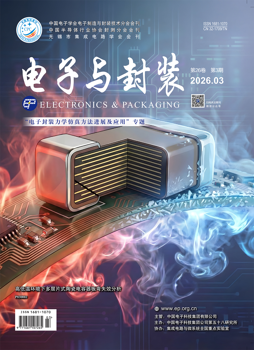 孙佳琛, 杨森, 徐琴, 沈飞, 柯燎亮. 高低温环境下多层片式陶瓷电容器板弯失效分析*[J]. 电子与封装, 2026, 26(3): 30002-.