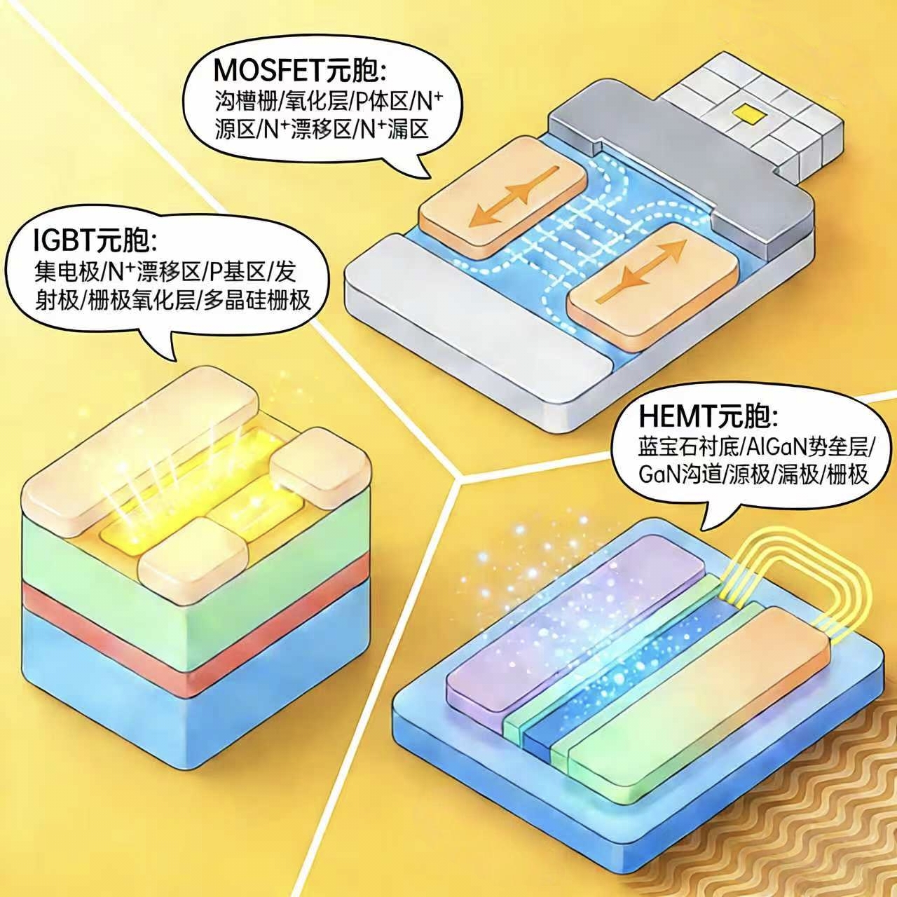 三种常见功率电子器件元胞结构示意图